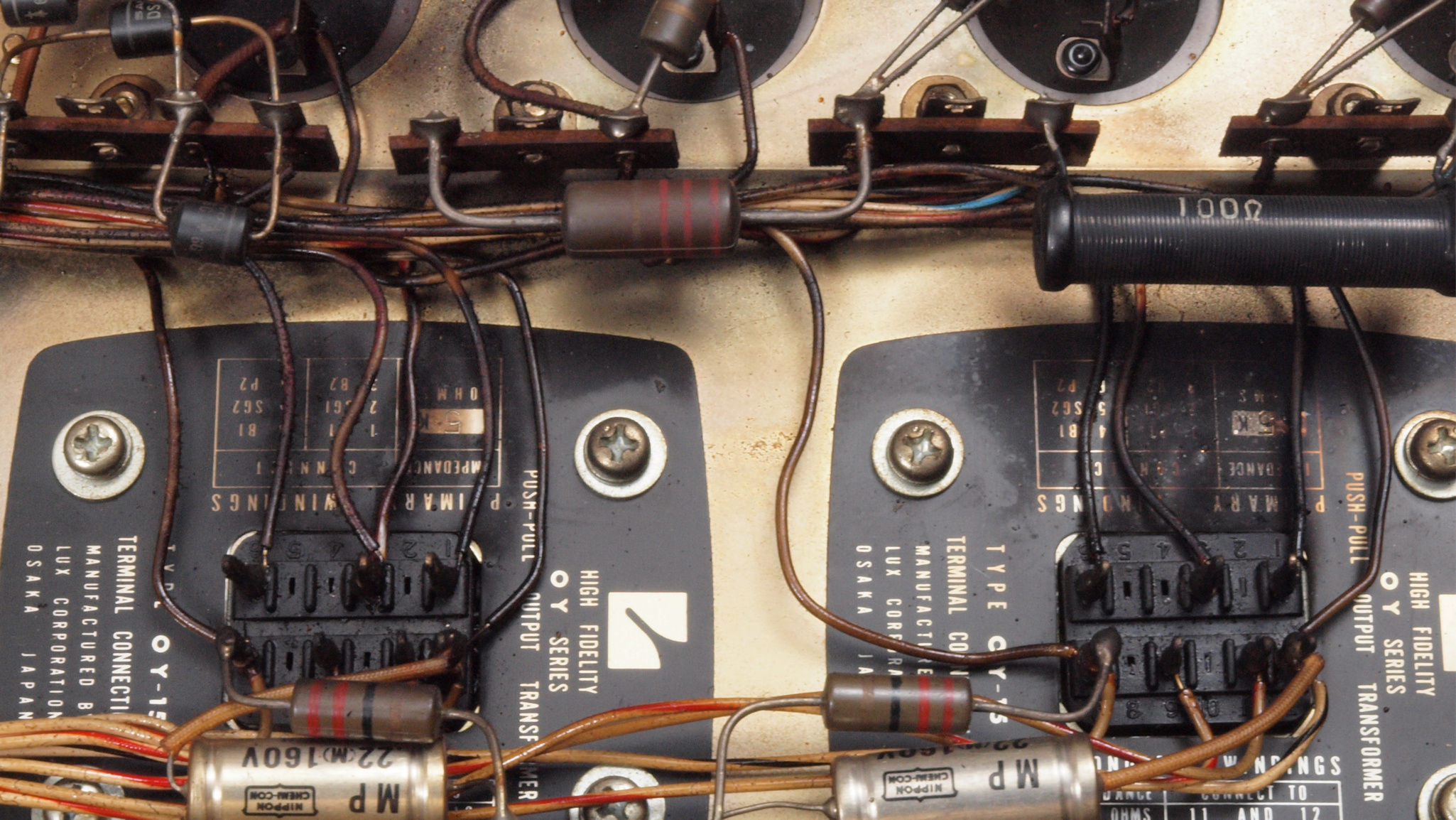 | T. 長期休眠の機器は通電前に、トランスの水分抜き処理。 左側=出力トランス2個へ、 右側=電源トランスへ。