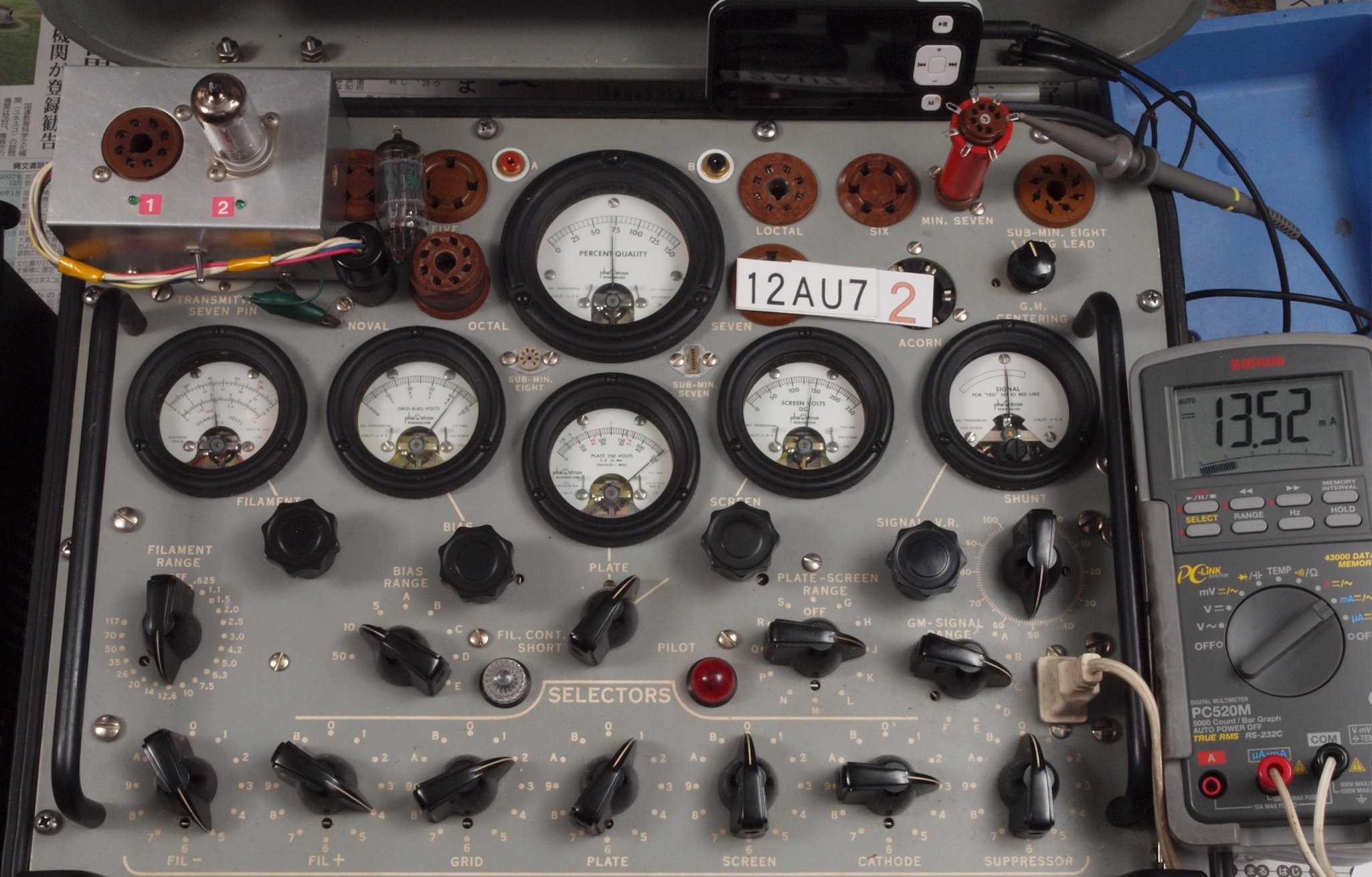 | U22. 付属R側「12AU7」ユニット2。 Gm測定=2800μmho、IP=13.52mA。 | ||||||||||||||||||||||||||||||