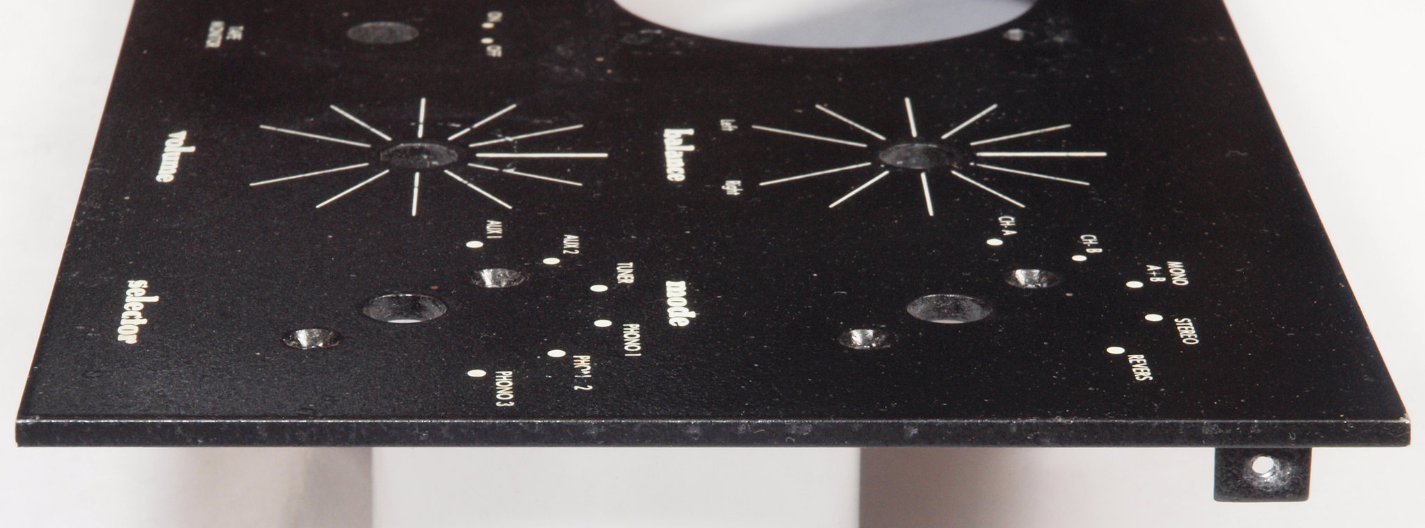 | CF3. 修理中 VUメーター取外。 左側=新しいISOネジ+強引にミリナット、右側=旧のミリネジ。 | ||||||||||||||||||||||||||||||