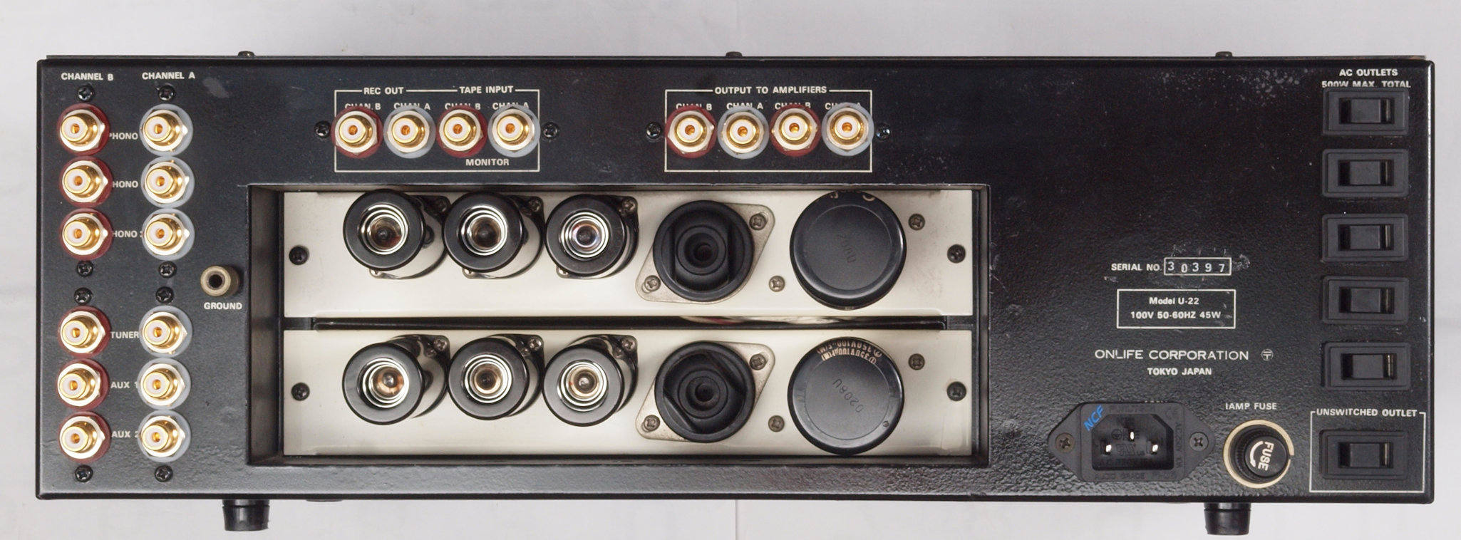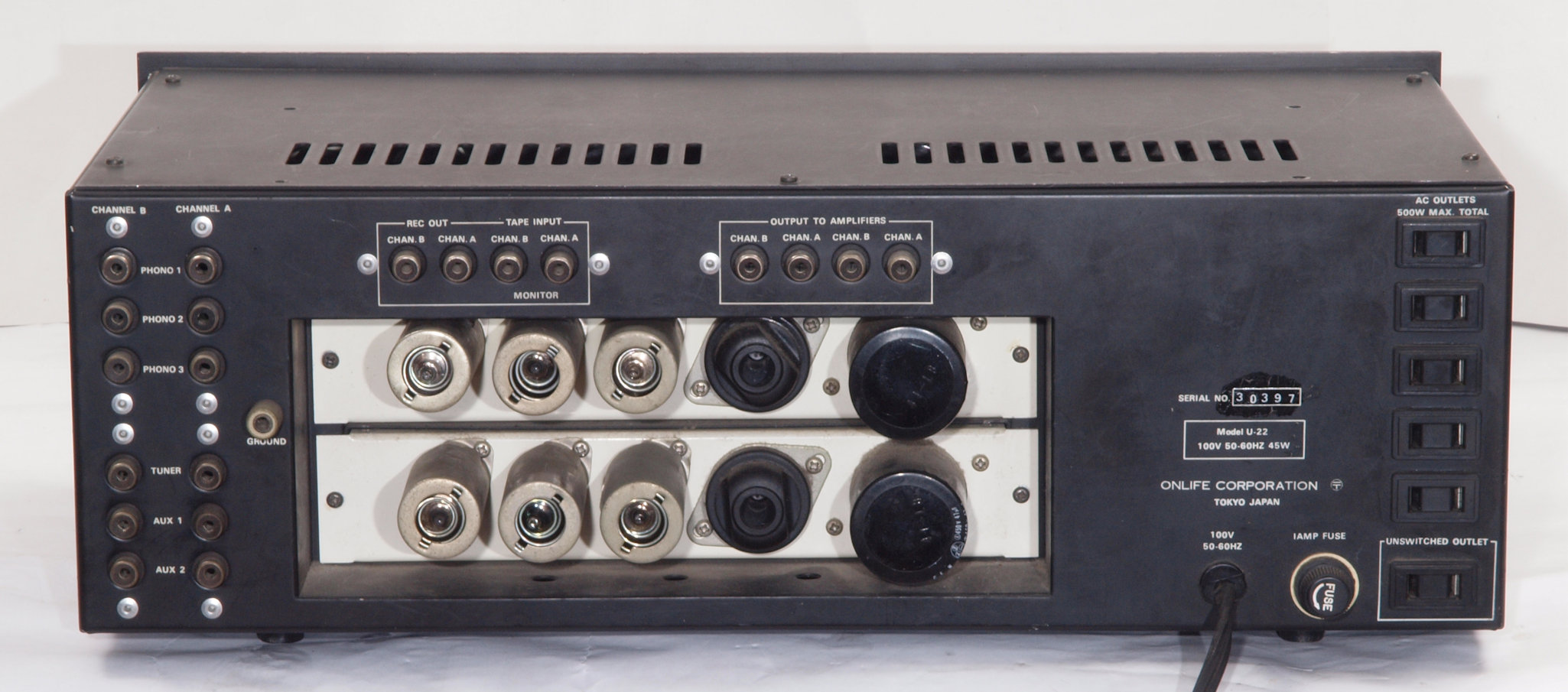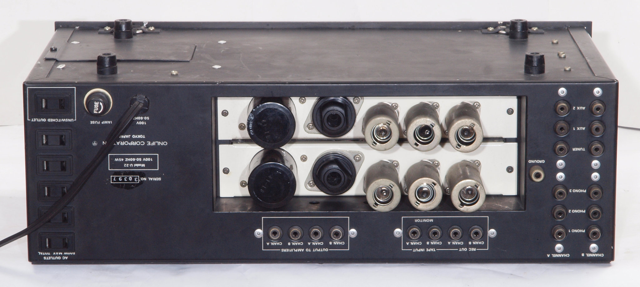 E. 調整・測定 VUメーター校正 F. 上位測定器による 調整・測定 G. 修理費 145,000円 オーバーホール修理。 但し、真空管は別途です。 Y. ユーザー宅の設置状況 S. Onlife Research U−22 の仕様(カタログ・マニアルより) |