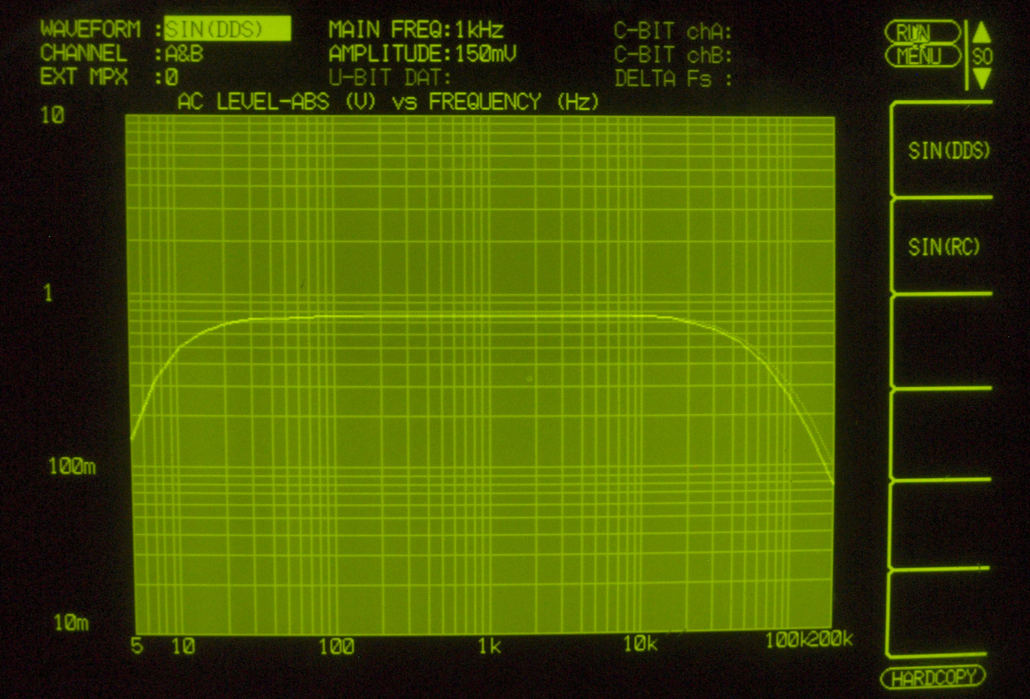 | F. 上位測定器による 調整・測定。 画像をクリックすると、大きく(横幅2050ドット)表示されます。 F0. 下のオーディオアナライザーVP−7732Aで自動測定。 |
